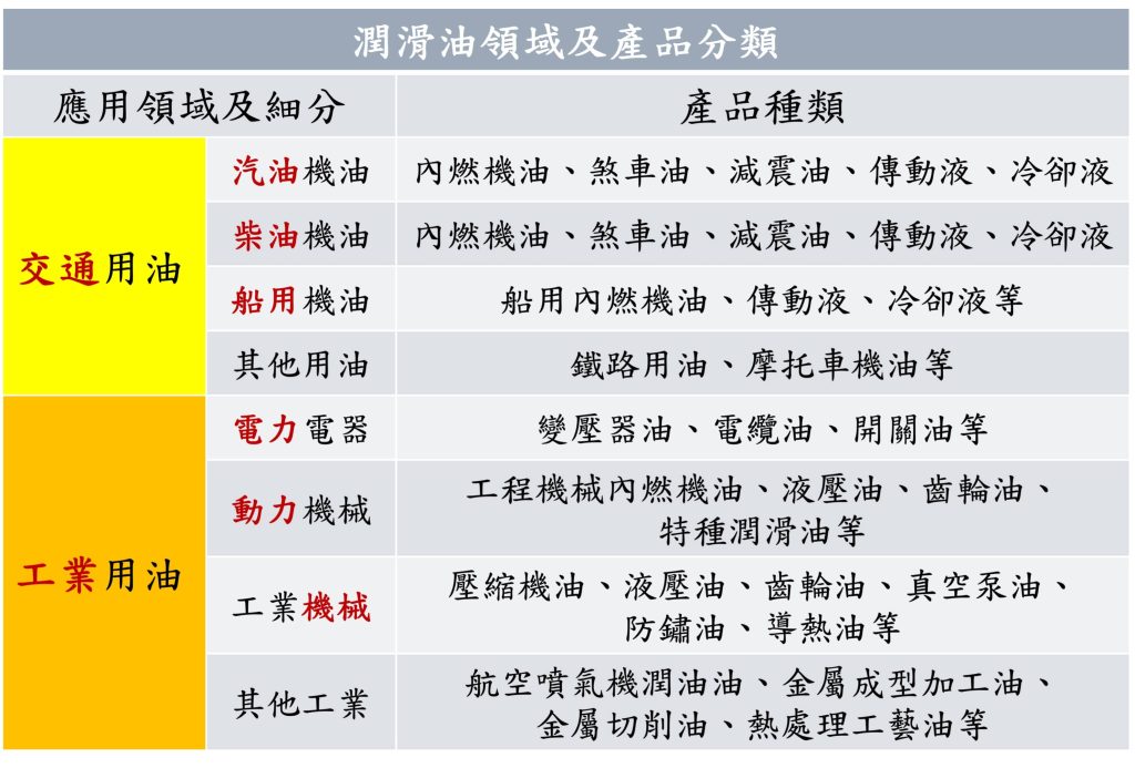 油是一種液態形式物質,其主要功能為產生油膜在運動的介面間減少摩擦,有潤滑、清潔及導熱的功能。在工業用的潤滑油中,其組成主要為基礎油及添加劑共兩大成份,因此對於潤滑油的功能上需求,會受其內容物的不同而有所不同。